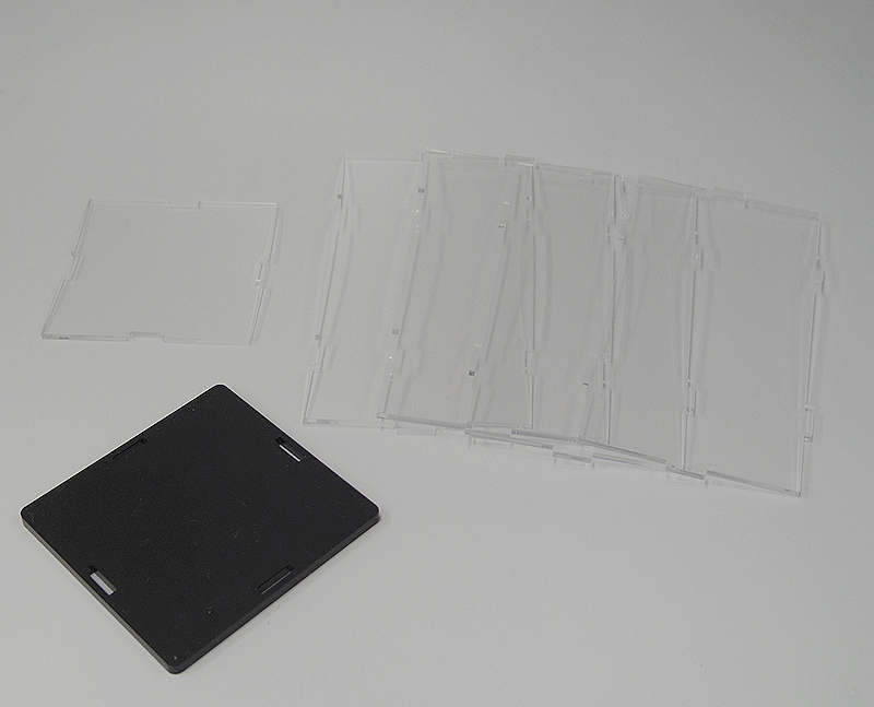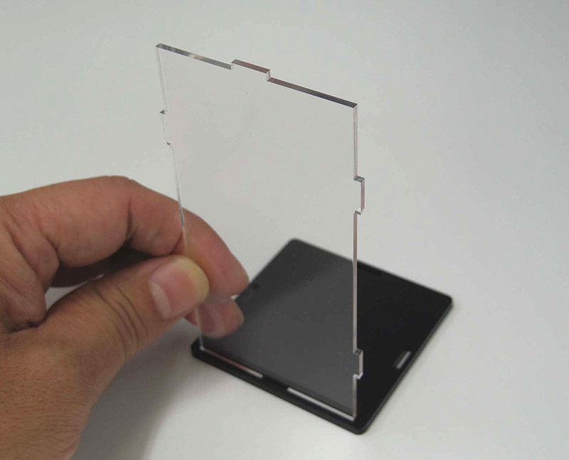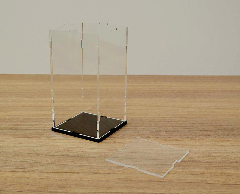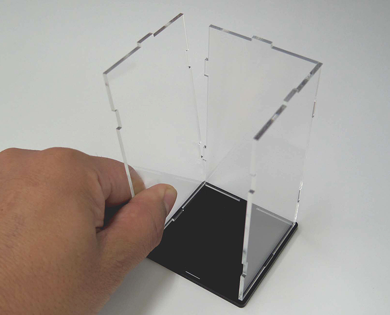 組み立て式のアクリル製ディスプレイケースです。それそれのフィギュフォトのサイズに合わせてご用意しました。 パチンパチンとはめていくだけで組み上がり、透明感も抜群。大切なフィギュフォトを汚れから守ります。